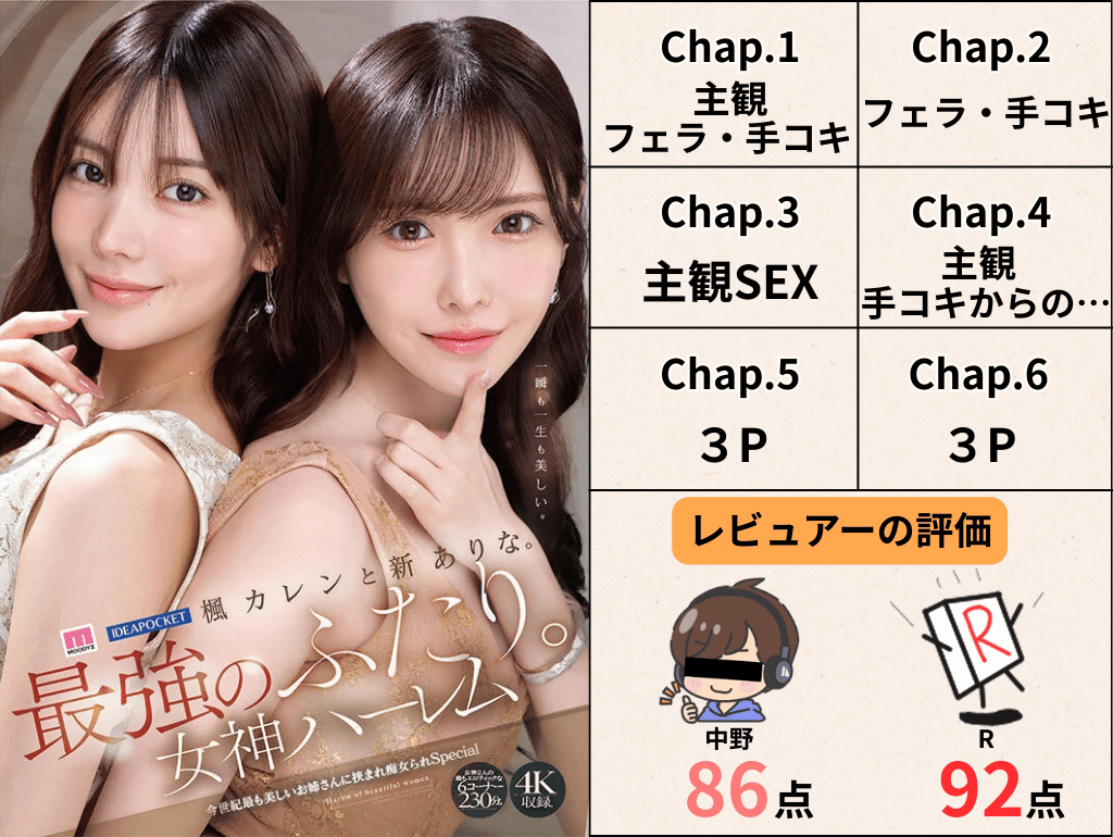 楓カレンと新ありな。最強のふたり。女神ハーレム 今世紀最も美しいお姉さんに挟まれ痴女られSpecial